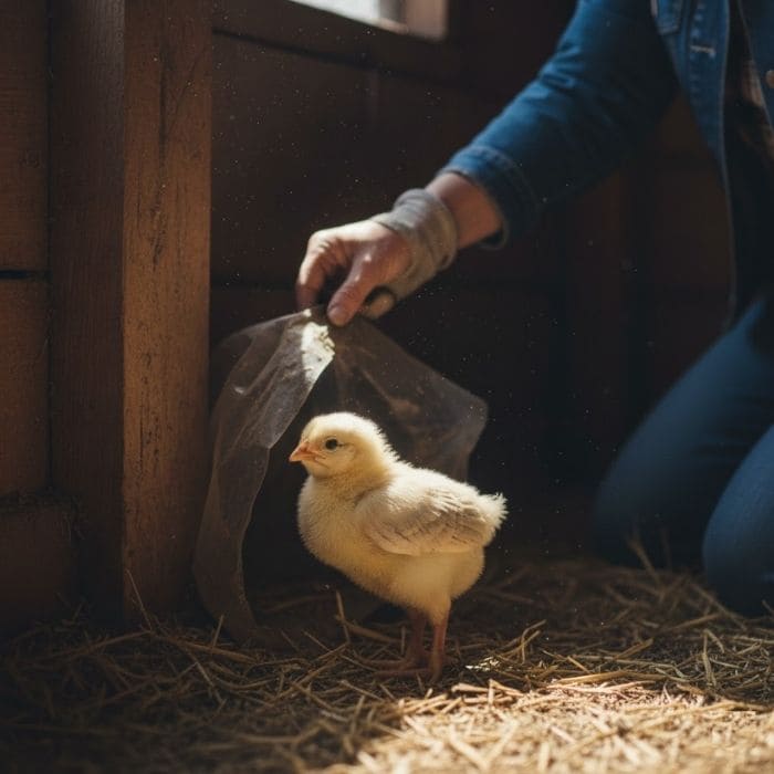 I knelt and lifted the edge gently. Underneath, in the dim light, was a baby chick.
