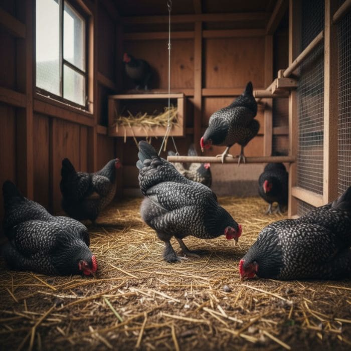 The Plymouth Rocks were quieter than usual. Movement slowed. A few birds stood apart from the flock with their heads slightly lowered, posture tight instead of relaxed. One hen hesitated when stepping down from a roost, misjudging her footing before correcting herself.