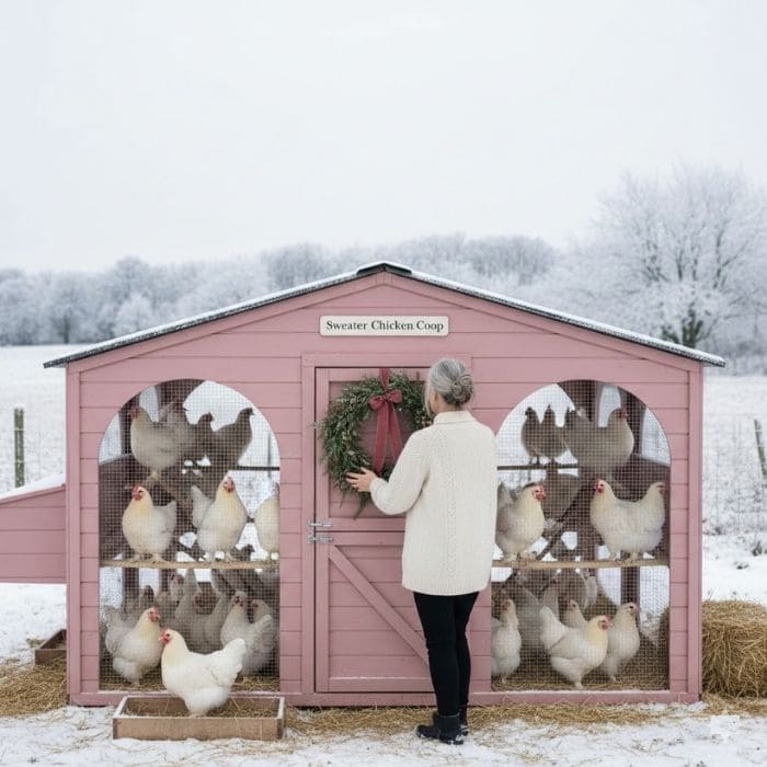 I began with the Sweater chicken coop, because it already carries a softness that feels festive without effort.